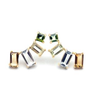 K18 イヤークライマー ピアス ペリドット/シトリン/ホワイトトパーズ/レモンクォーツ 18金イエローゴールド カラフル 天然石 個性的 日本製