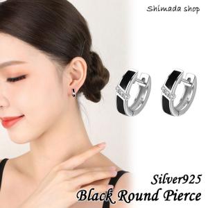 フープピアス ラウンド ジルコン ブラック 小さいピアス 金属アレルギー ニッケルフリー シンプルピアス 小さめピアス リング シルバー 仕事 オフィス