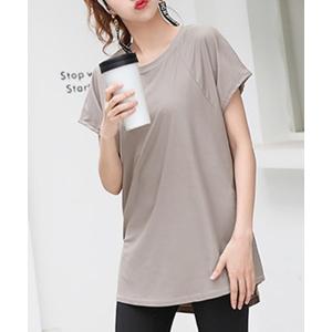 tシャツ レディース 半袖サイドスリットきれいめヨガウェアトップス ピラティス ロング丈 レディース