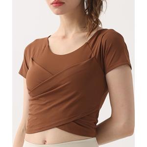 レディース 半袖くしゅっとクロス風クロップド丈フィットネスブラトップスヨガピラティスウェア レディース