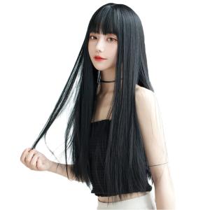 ウィッグ ロング ストレート かつら フルウィッグ 自然 ぱっつん 小顔 人気 耐熱 wig 原宿系 ファッション ネット/櫛付き 黒 ブラ