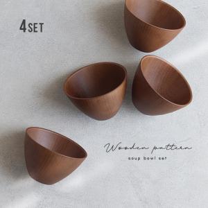 木目スープボウル 4点セット(お椀 セット 食器セット 4人 ファミリー 二人暮らし おしゃれ 家族 食器 食洗機対応 レンジ対応 どんぶり椀 ボウル マルチボウル)