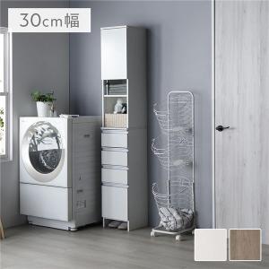 ランドリーチェスト 幅30cm ホワイト 汚れに強い 薄型 スリム 扉付き 隙間収納 ラック 洗面所収納 サニタリーチェスト