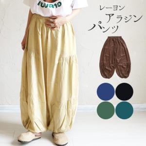送料無料 アラジンパンツ サルエルパンツ エスニック ボトムス レディース メンズ ウエストゴム ファッション シャーリング レーヨン カジュアル ゆったり (2)