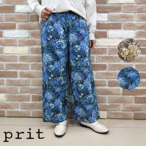 prit プリット 服 パンツ 60/1 ローン ガーデン プリント ワイドパンツ P71625 新作 ブランド レディース 花柄 植物柄 ワイド バギー ストレート ウエストゴム