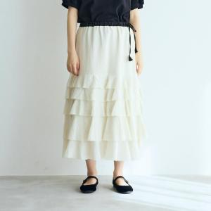 MAGALI | コットンシルクブレイド・ティアードスカート (アイボリー) | マガリ ボトムス スカート