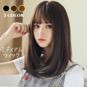 フルウィッグ レディース ウィッグ ミディアム ロング 内巻き Cカール 前髪 ブラック ブラウン 黒髪 自然 ナチュラル かわいい