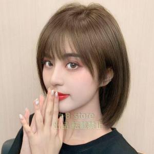 ウィッグ ミディアム ボブ アッシュ ブラウン フルウィッグ 医療用 かつら ネット付き 前髪あり 自然 バレない 普段使い おしゃれ 小顔効果