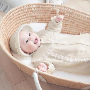 ツーウェイオール ドレスオール ベビー服 新生児 服 ベビードレス ベビー 赤ちゃん ニットキルト フード付き レース リボン おしゃれ