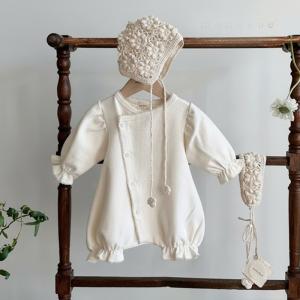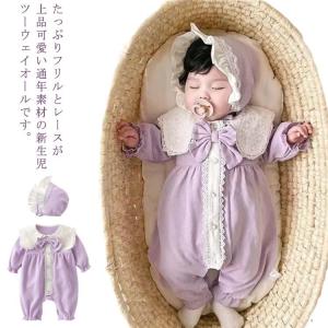女の子 出産祝い 新生児ツーウェイオール ロンパース 【帽子付き★2点セット】 フォーマルウエア ベビードレス カバーオール 春秋冬 ベビー 結婚式