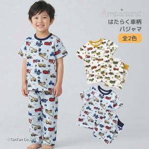はたらく車柄パジャマ 半袖 長ズボン 80-140cm 部屋着 ワンマイルウェア 子供服 男の子 キッズ ベビー ampersand アンパサンド K 新作 2602 69