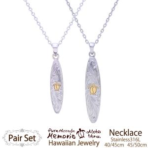 ハワイアンジュエリー ペアアクセサリー ペアネックレス ホヌ 波 ネックレス ペア 金属アレルギー ステンレスネックレス カップル お揃い