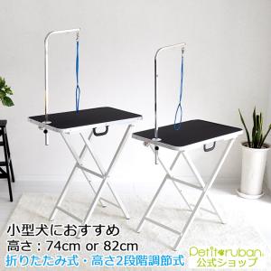 トリミングテーブル 折りたたみ式 アジャスター付2段階調節 トリミング台 台面ブラック 足ホワイト 高さ74cm OR 82cm 爆買