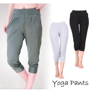 【メール便送料無料】ヨガパンツ レディース 7分丈 ポケット付 s/m/l/ll ショート ヨガウェア サルエル リラックス エクササイズ 速乾性 伸縮性 ホットヨガ