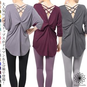 ヨガウェア トップス Tシャツ ドルマンスリーブ ロング丈 丈長 ヨガ ホットヨガ レディース AMT011