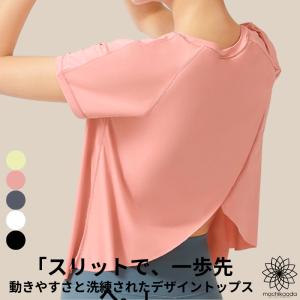 ヨガウェア トップス Tシャツ 通気性 ヨガ ジム エクササイズ フィットネスウェア ランニング バックデザイン ホットヨガ 771 バックスリットT