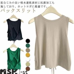 タンクトップ ヨガウェア レディース バックスリット ホットヨガ フィットネスウェア おしゃれ ロング 体型カバー トップス 吸汗速乾 ショート へそ