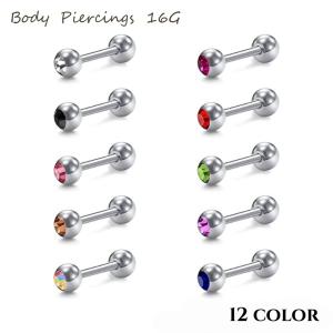 ボディピアス 16G 1.2mm レディース メンズ アクセサリー ラインストーン キラキラ カラバリ豊富 シンプル 定番 女性 男性 普段 プレゼン