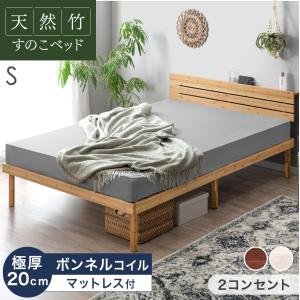 ベッド マットレス付き シングル おしゃれ マットレス すのこベッド マットレスセット 宮付き ボンネルコイル 20cm厚 ピロートップ コンセント マットレス