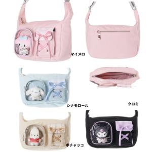 サンリオキャラクターズポリチェック2ポケットぬい付ラウンドショルダ サンリオ ポシェット ショルダーバッグ 旅行ポシェット ミニショルダー