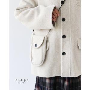 ポシェットセットコート 【set】コート 羽織り アウター ポシェット付き アイボリー ウール混 暖かい ハーフコート ジャケット 体型カバー ポケット レディース