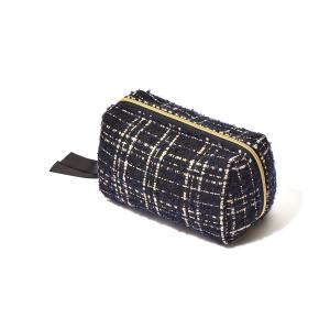 ポーチ ツイード スタンドポーチ ブラック レディース