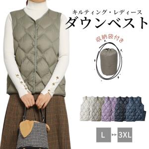 ダウンベスト ベスト インナーダウン レディース キルティングベスト ライトダウンベスト アウター 軽い 暖か 防寒 薄い コンパクト ショート丈 収納袋