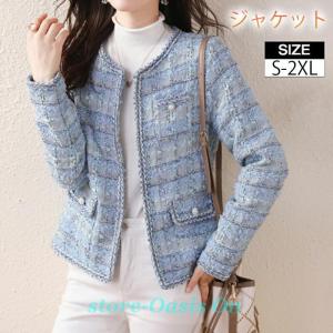 ツイードジャケット ジャケット レディース 春秋 フォーマル ショート丈 日常 デート パーティー オフィス お宮参り 結婚式 お食事会 通勤 オフィス