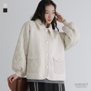 「送料無料」ブルゾン ジャケット レディース アウター 羽織 ショート丈 異素材 キルティング 刺繍「メール便不可」「40」
