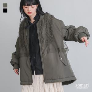 ブルゾン 長袖 レディース アウター ミドル丈 羽織 MA-1 中綿 チュール フリル レイヤード 50代 秋 冬「送料無料」「メール便不可」「50」
