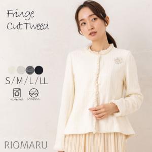 ジャケット レディース 白 春 入学式 卒業式 フォーマル アウター (S〜LL)カットツイード フリンジ ノーカラー ウォッシャブル ペプラム長袖ジャケット(jk)(rc)
