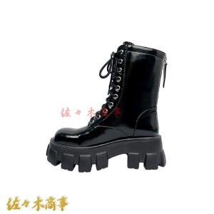 レディース ショートブーツ エナメル レースアップ ミドルヒール ラウンドトゥ チャンキーヒール ジップアップ 秋冬靴 コンフォート 快適