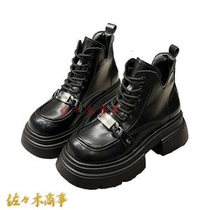 レースアップ ショートブーツ カジュアルブーツ レディース メタリック モンクストラップ レースアップ ベルト 金属 ミドルヒール ジップ
