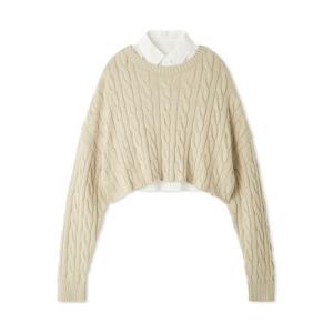 ミラ オーウェン Mila Owen 【セットアイテム】シャツレイヤードケーブル短丈ニット (LBEG)