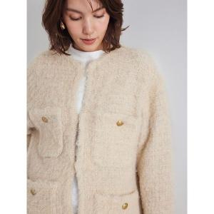 ジャケット ノーカラージャケット 金釦ラメシャギーツイードニットジャケット レディース