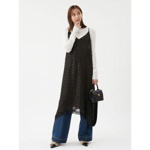 ワンピース レースデザイン箔ドットキャミワンピース