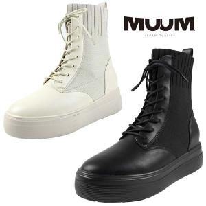 ムーム MUUM 美脚効果 1741 厚底 インヒール ソックスブーツ ショートブーツ カジュアル レースアップ サイドゴア クラシカル シンプル レディース 送料無料