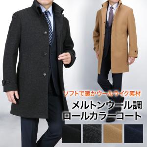 衿高 ロールカラーコート メルトン ウールライク素材 スリム ハーフコート なめらか 暖かい 保温性 ビジネス カジュアル 秋冬春 メンズ おしゃれ 【MFUK】