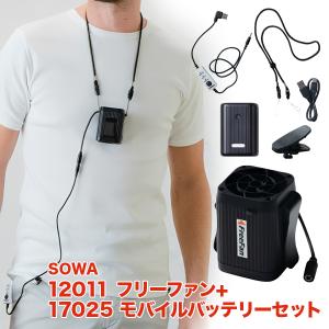 桑和 12011 フリーファン + 17025 モバイルバッテリーセット ネックストラップ付 12011 モバイルチャージャー バッテリー 17025 SOWA 新商品