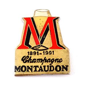 ピンバッジ・モントードン赤いMシャンパーニュ酒 CHAMPAGNE-MONTAUDON FRANCE◆フランス限定ピンズ◆レアなヴィンテージものピンバッチ