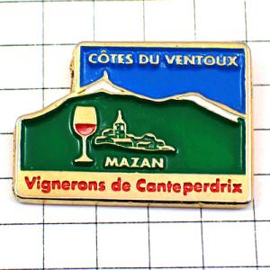ピンバッジ・モンヴァントゥ山とワイン葡萄酒グラス一杯◆フランス限定ピンズ◆レアなヴィンテージものピンバッチ