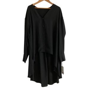 未使用 aga アーガ ヤマダヤ Vネック 長袖 ロングシャツ チュニック ワンピース サイズ9 ブラック レディース 古着 中古