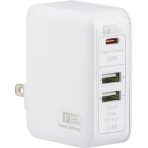 オーム電機 MAVAUPD3042W AC充電器 3ポート 急速充電対応 ホワイト