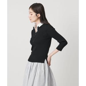 ニット セーター 7分袖 シャツ コンビ ポロニット レディース