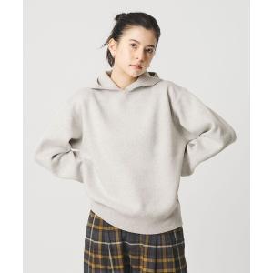 ニット セーター コットンウールブレンド ソリッド&ボーダーニットフーディ ウォッシャブル レディース