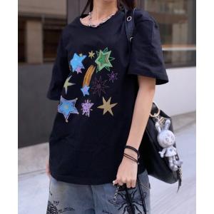 tシャツ DISPARK/スタースタッズロゴトップ レディース