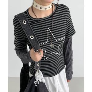 tシャツ スターレイヤード風ボーダートップス/Tシャツ レディース