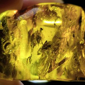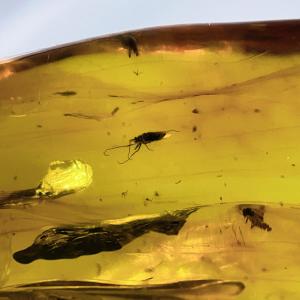 PROME 天然石 一点物 超超超希少!!! 虫がたくさん 虫入り琥珀 (鑑別書付き)バルト海沿岸地域産 NO.V8949