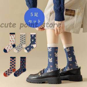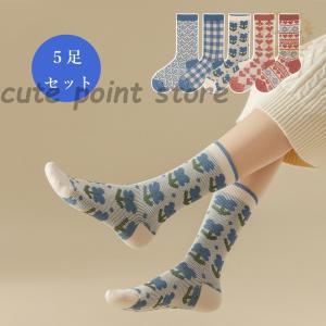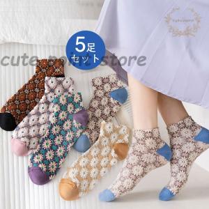 ソックス レディース 靴下 花柄 韓国風 大 女性用 婦人用 普段使い 快適 上品 抗菌防臭 5足セット おしゃれ かわいい 通勤 通学
