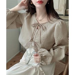 ブラウス シャツ ジャガードリボントップス レディース ブラウス シャツ ジャガードリボントップス レディース999円